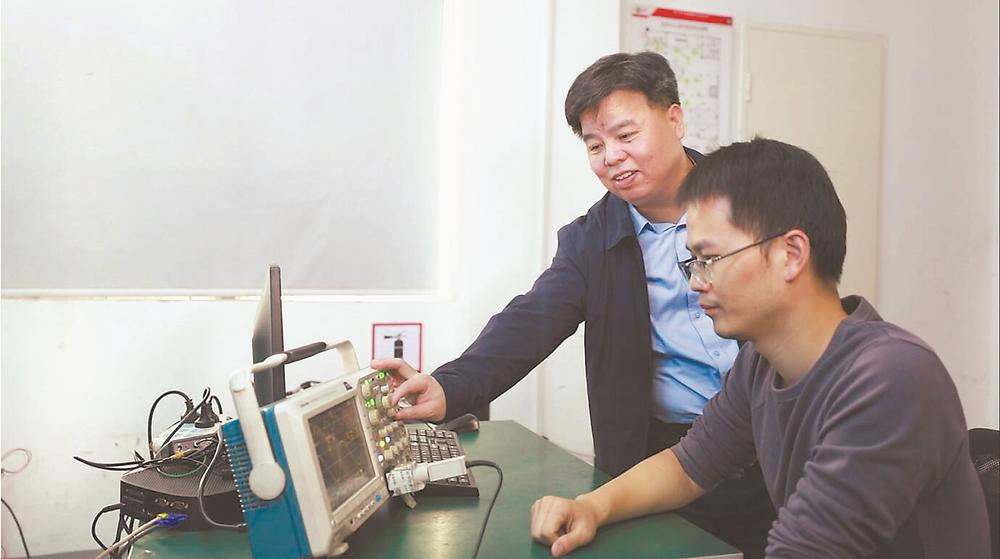 苏先进(左)指导研发人员进行研发